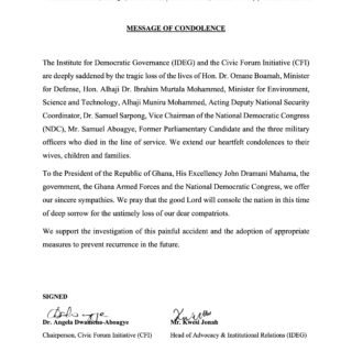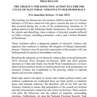 This programme deals with broad and specific questions pertaining to the management of competitive democratic politics as a credible and viable framework for sustaining peace and stability as well as nation-building and equitable development in Ghana...